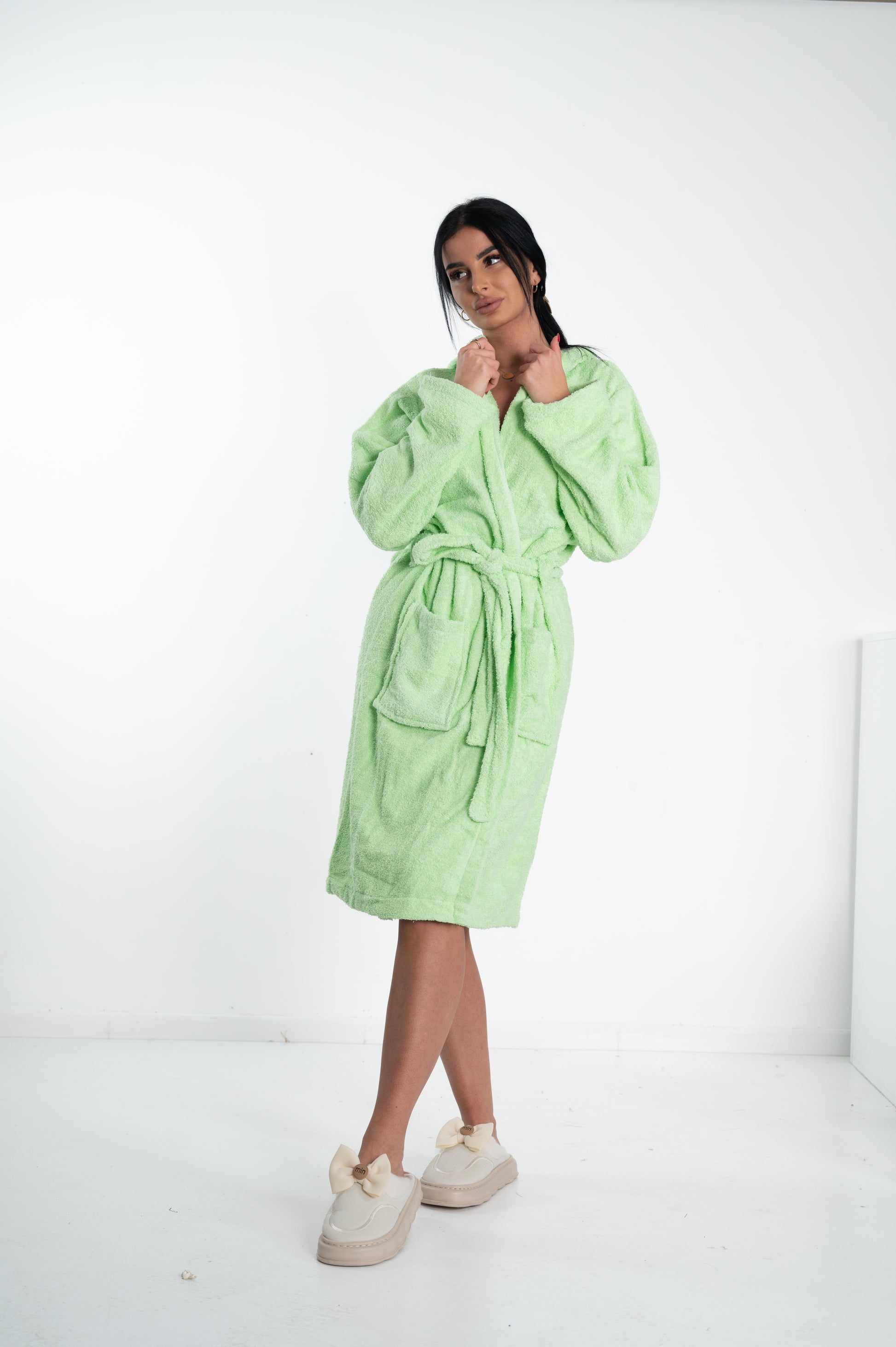 Ženski bademantil od frotira-ZELENA BOJA